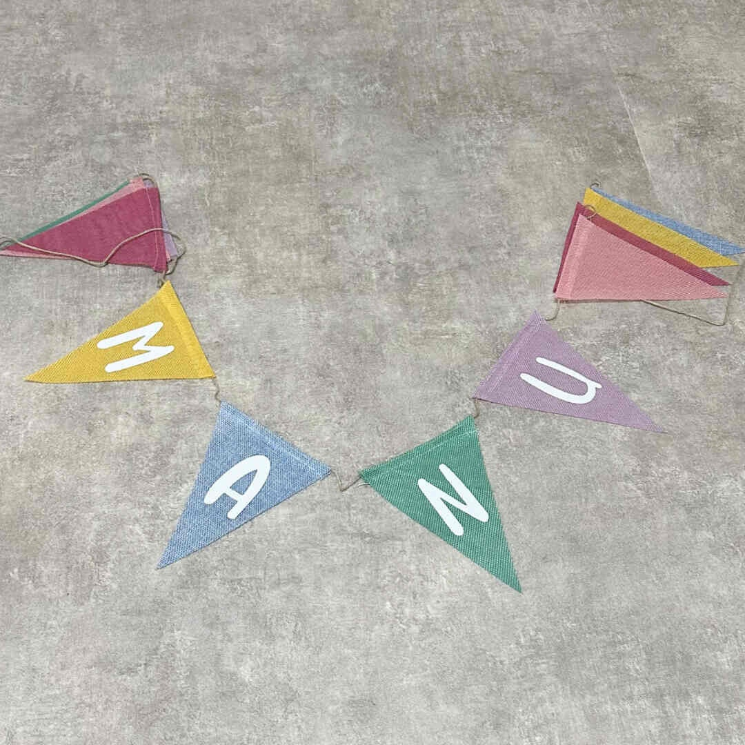 Breng kleur en vrolijkheid in elke feestelijke gelegenheid met deze prachtige vlaggenlijn met naam, ook wel bekend als de vlaggenlijn kleurrijk! De vlaggetjes komen in een speelse mix van kleuren zoals roze, paars, groen, geel en blauw, waardoor deze vlaggenlijn met naam een echte eyecatcher is.